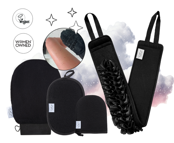 This four-piece bundle includes our most-loved exfoliation tools, each made with our signature plant-based fabric that naturally buffs away dead skin cells, unclogs pores, and enhances product absorption. Gently cleanse and refine your complexion with the dual-sided Facial Mitt, target ingrown-prone areas with the cushioned Bikini Buffer, smooth and renew your skin with the Original Body Mitt, and reach every inch with the dual-sided Back Exfoliator featuring a soft mesh pouf.