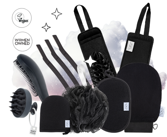 Enhance your routine with the oversized exfoliating loofah for gentle lather, and treat your scalp with our eco-friendly shampoo and detangling brushes, crafted to exfoliate buildup and balance oils. Finish with our dermaplaning razors to remove peach fuzz, shape brows, and polish your complexion!